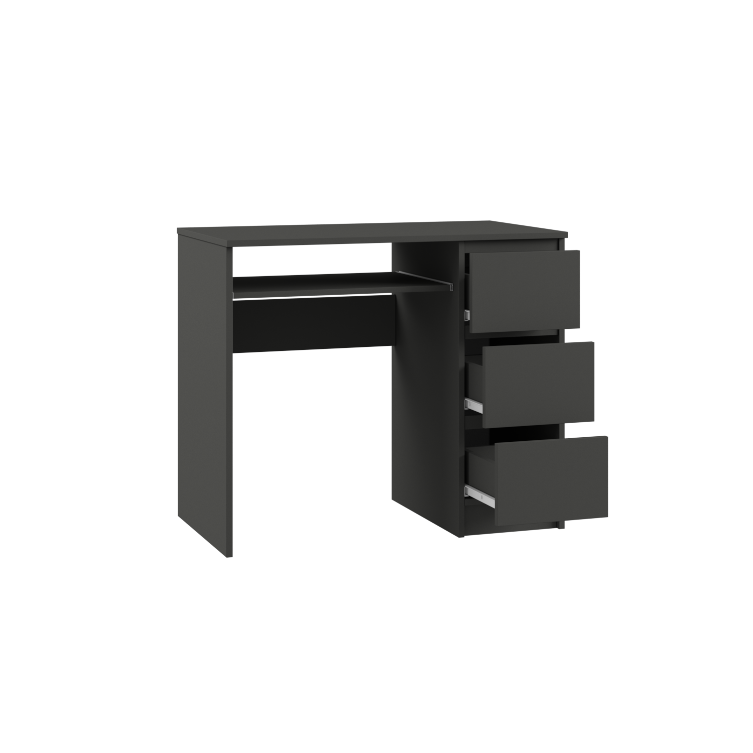 Современное рабочее место невозможно представить без удобного письменного стола «Мадера СМП» с правой секцией ящиков из ЛДСП графита. Размер столешницы — 105х75 см обеспечивает достаточно пространства для работы и творчества. Графитовое покрытие придает интерьеру строгости и элегантности, идеально вписываясь в любой офис или домашнюю обстановку. Удобные вместительные ящики помогут организовать хранение документов и рабочих материалов.