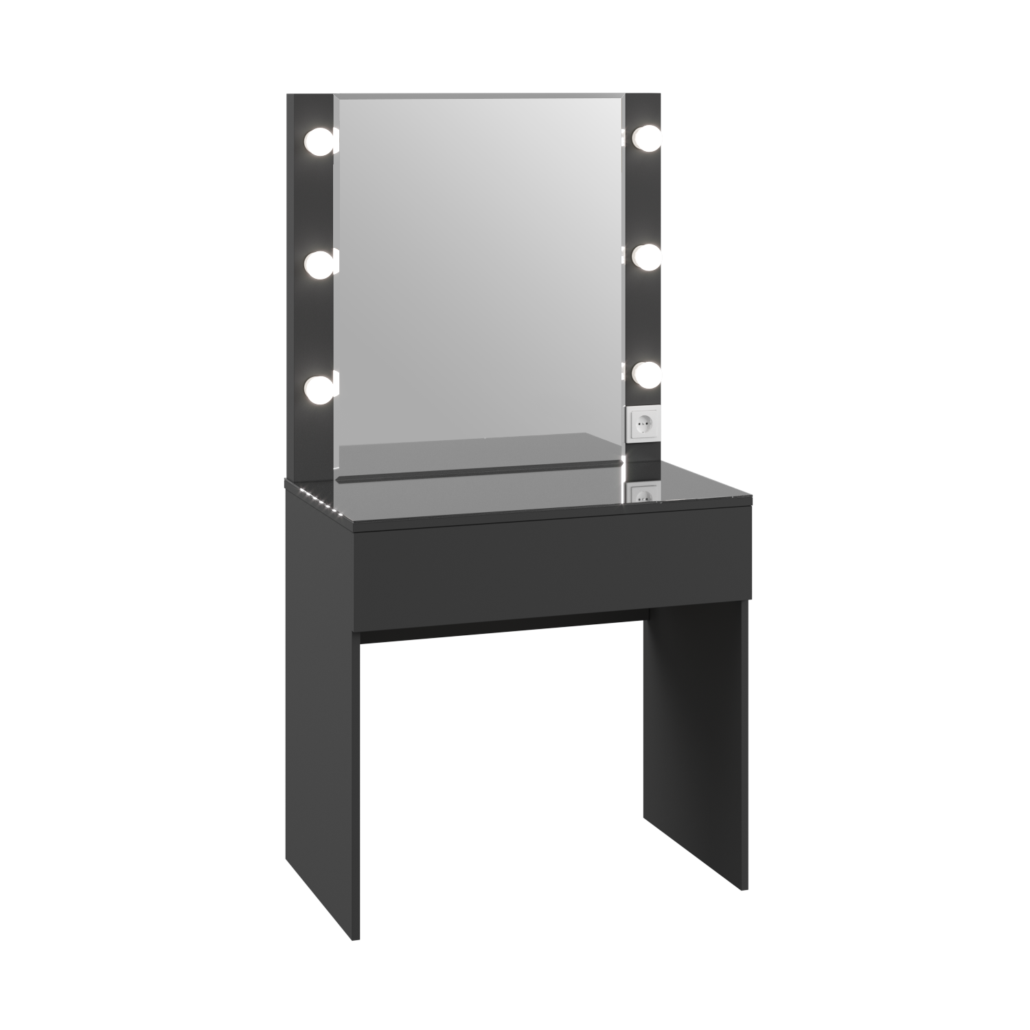 Туалетный столик «Мадера Трюмо» — идеальное сочетание стиля и функциональности! Графитовое ЛДСП придает элегантность вашему интерьеру, а продуманная конструкция размером 800x1550x464 мм обеспечивает комфортное пространство для ухода за собой. Интегрированные лампочки создают мягкое равномерное освещение, подчеркивая естественную красоту и помогая аккуратно наносить макияж. Ваш идеальный образ начинается здесь!